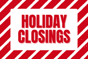 Closed: Wednesday, December 24, Thursday, December 25, and Thursday, January 1.